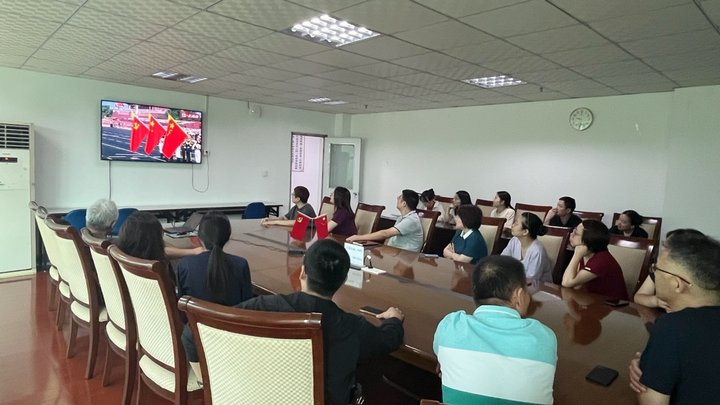 2025年9月3日,是中国人民抗日战争暨世界反法西斯战争胜利80周年纪念日。药大制药有限公司党总支书记、副总经理郝静梅组织公司党员齐聚三楼会议厅,集体观礼纪念中国人民抗日战争暨世界反法西斯战争胜利80周年阅兵盛典直播。党员们无不心潮澎湃、热泪盈眶,这场阅兵不仅唤醒了民族记忆深处的烽火岁月,更点燃了“爱我中华、砥砺前行”的炽热初心。